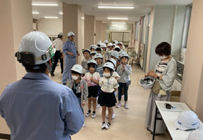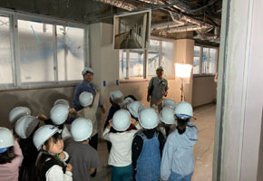 某クリニック新築工事作業所で、建築工事中の建物の見学をしました、こどもたちに好評でした。