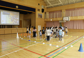 西小学校校舎長寿命化改修工事作業所で、ドローンでの撮影体験、測量機器の体験、改修工事の体験見学などを行いました、こどもたちに好評 でした。
